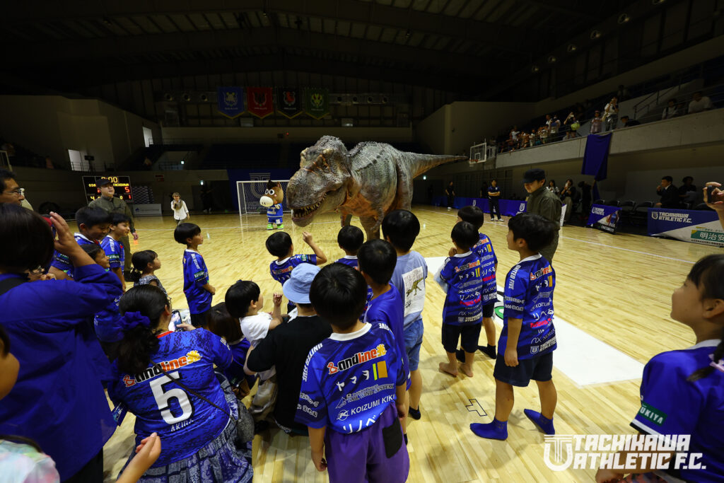 開幕戦を引き分け、3試合を1勝1敗1分と快調な船出とはいかなかった新シーズン。しかしアウェイ横浜、ホームで大阪と連勝。そして前節は昨シーズン3敗と完膚なきまでに叩き潰された王者バルドラール浦安戦に勝利。これにより勝点13、浦安と入れ替わり首位に浮上したアスレ。まだシーズンは始まったばかりだが、このメンバーで戦えることを証明してくれた。そして今節は、昨年に引き続きDINO-A-LIVE DAY!!!アリーナ立川立飛に恐竜がやってくる!!
