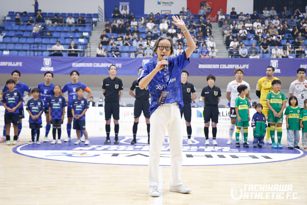 試合前には、立川商工会議所 会頭 川口哲生様より、地域とともに歩むクラブへの激励と、今後のさらなる発展を願うご挨拶をいただきました。