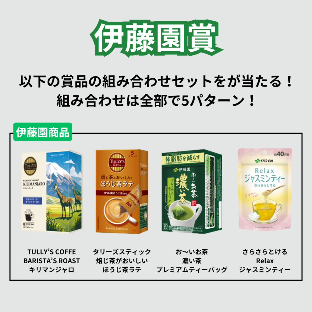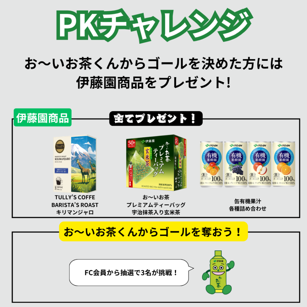 成功者には伊藤園商品3種セットとアスレマフラータオルをプレゼントしました。