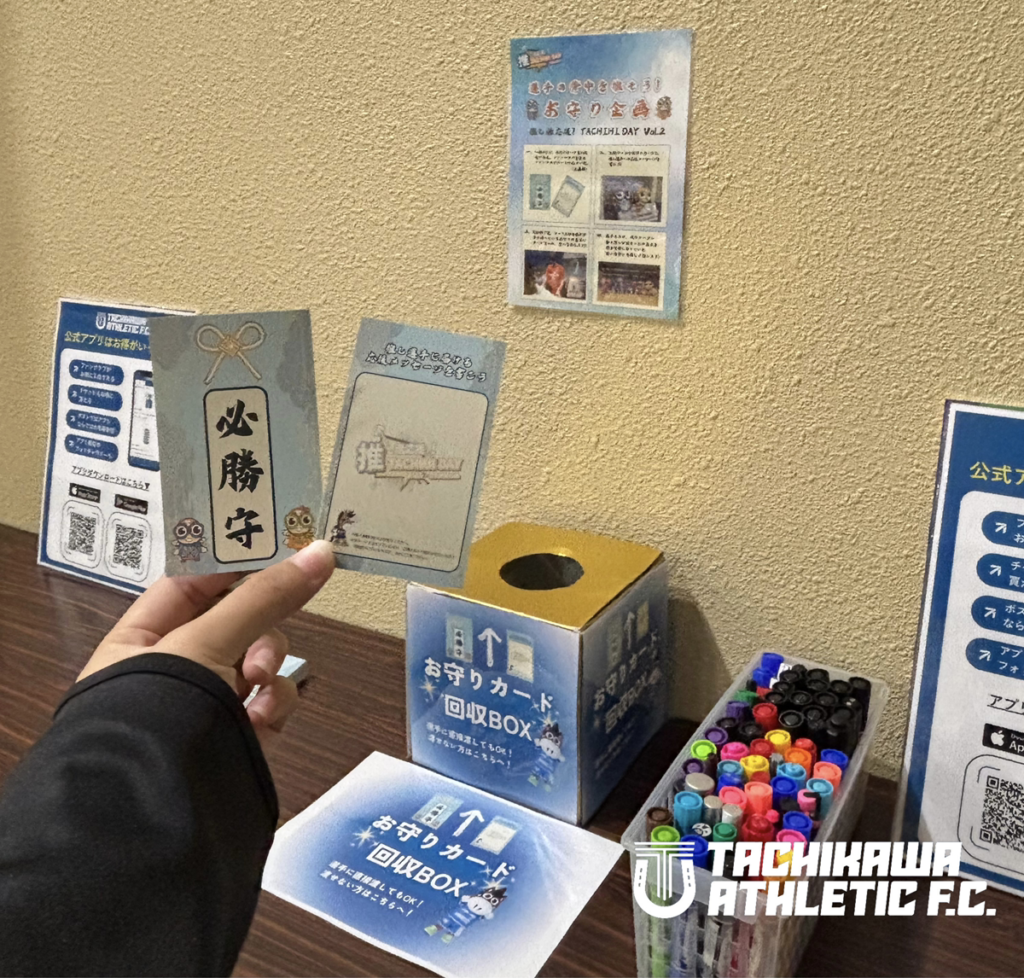 第12節・アリーナ立川立飛で行われたバルドラール浦安戦で実施した「お守りメッセージカードイベント」が今回も登場。