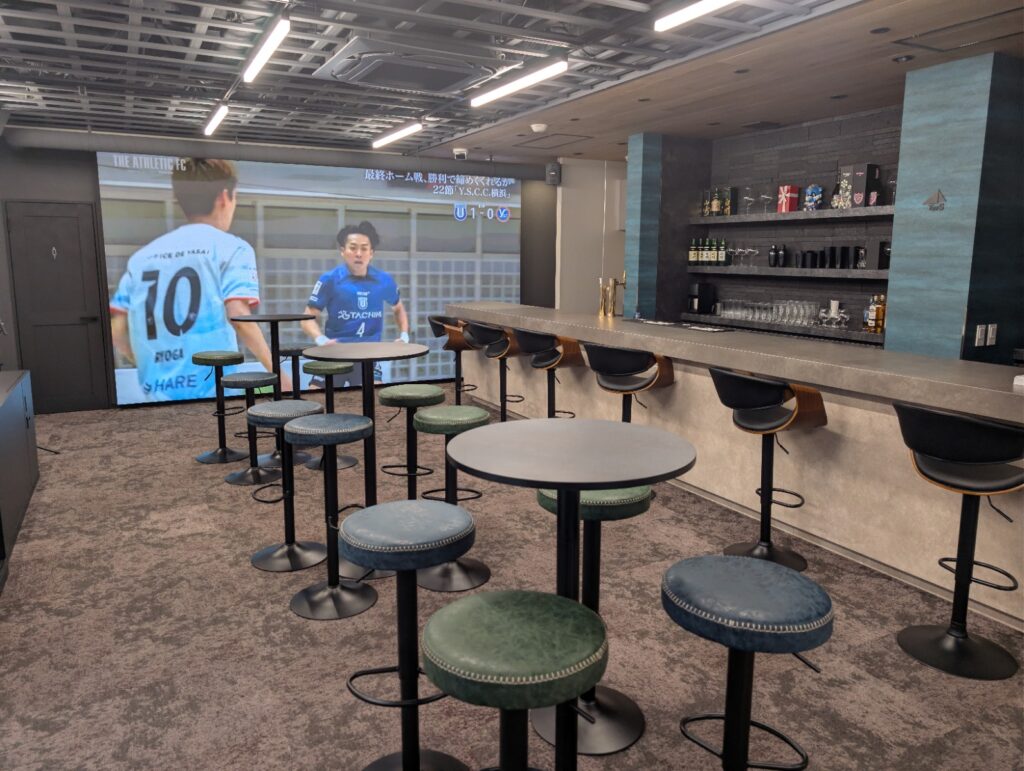 このようにテーブル・椅子があり、バーカウンターでお酒を楽しみながら観ることができます!