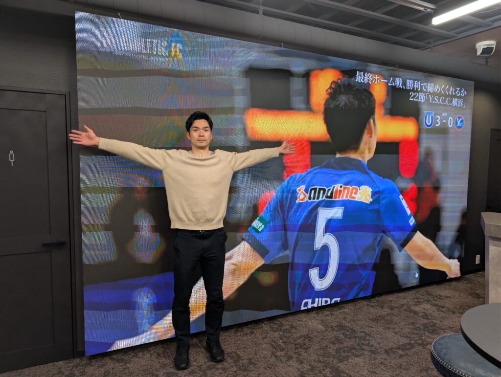 試合当日は会場にて、試合中継をこの超大型スクリーンで放映し、みなさまと一緒に応援できる場を設けます。